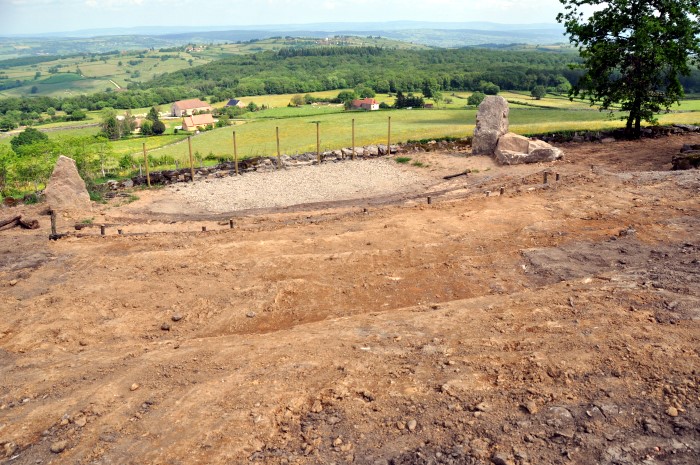 C’est en réalisant ces travaux à côté de la montée du bélvédère à Mont-Saint-Vincent qu’ils ont découvert, enterrées à quelques cm du sol, des énormes pierres taillées ; pierres qui ressemblent fort à des menhirs de l’époque celtique mais cela reste cependant à authentifier par des spécialistes.