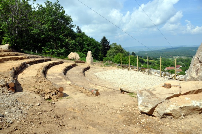 Et de poursuivre : « ce théatre de verdure que nous construisons est situé sur un site magnifique, avec pour les musiciens ou autres artistes qui viendront s’y produire, le plus beau fond de scène qui puisse exister, à savoir le panorama vers la chaîne du MONT BLANC. Il pourra accueillir quelques 200 personnes assises et entre 50 à 80 personnes debouts ou assises sur les rochers millénaires que nous avons remis en valeur